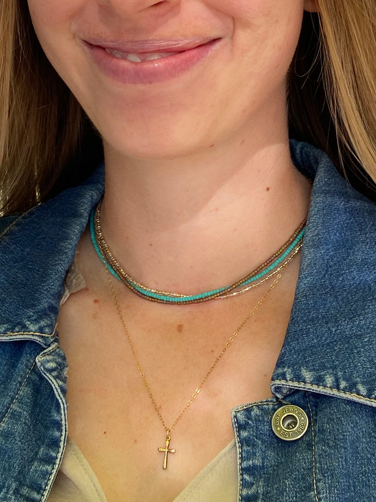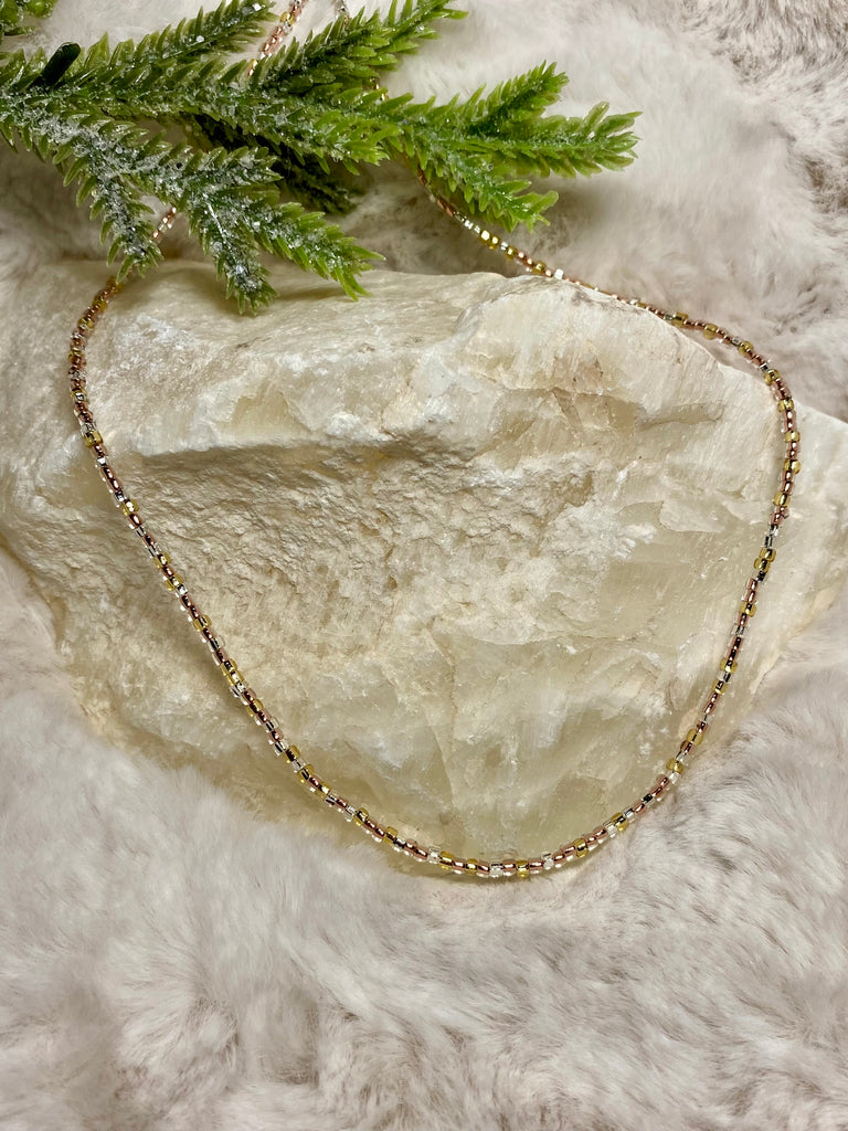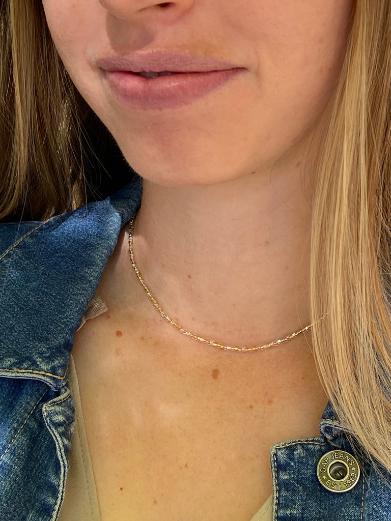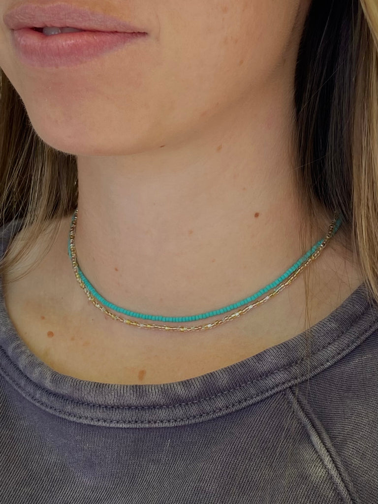We have a new choker that your going to love. Fully beaded with a delicate bead. a sterling silver clasp and slightly stretchy for a comfortable fit. size 14" 15" 16" you can wear one or stack 2 or 3 up it looks great. its a fun gift for the girls that love chokers.