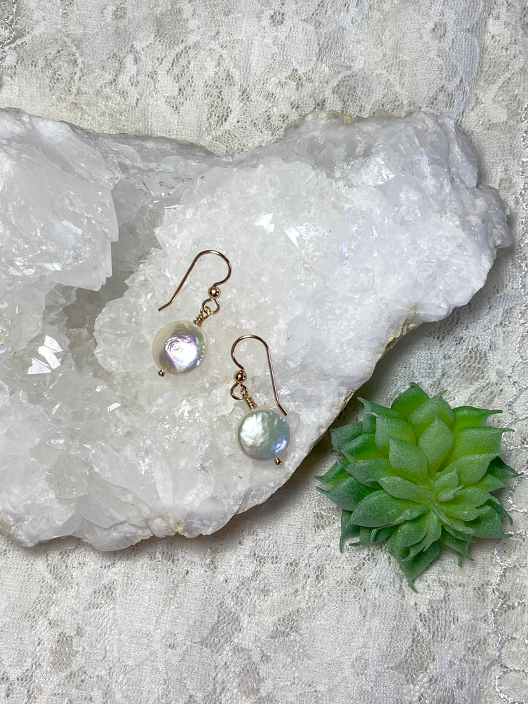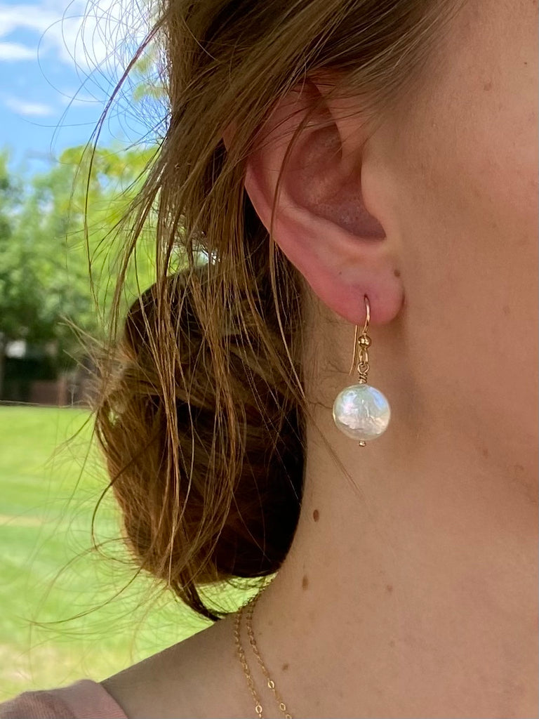 Our gorgeous and simple Coin Pearl earrings are a must have designed in 14K Gold Filled they are beautiful for any occasion fresh water pearls are unique each with a one of a kind beauty. A beautiful staple to add to your jewelry collection.