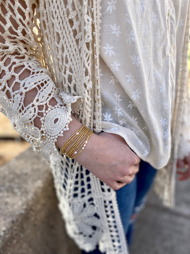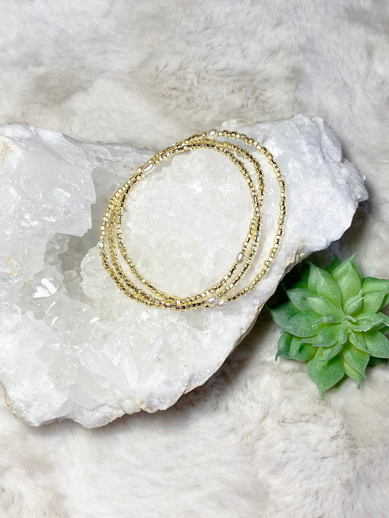 One of our most popular wrap bracelets it’s beautiful and so comfortable there fun these will quickly become your favorite. The wrap is single strand of glass beads slightly stretch one size fits most. Available with or without fresh water pearl accents. 1pc wraps 3 times for bracelet. Looks amazing mixing 2 or 3 strands.