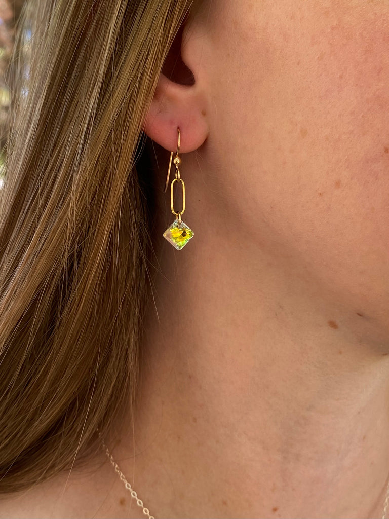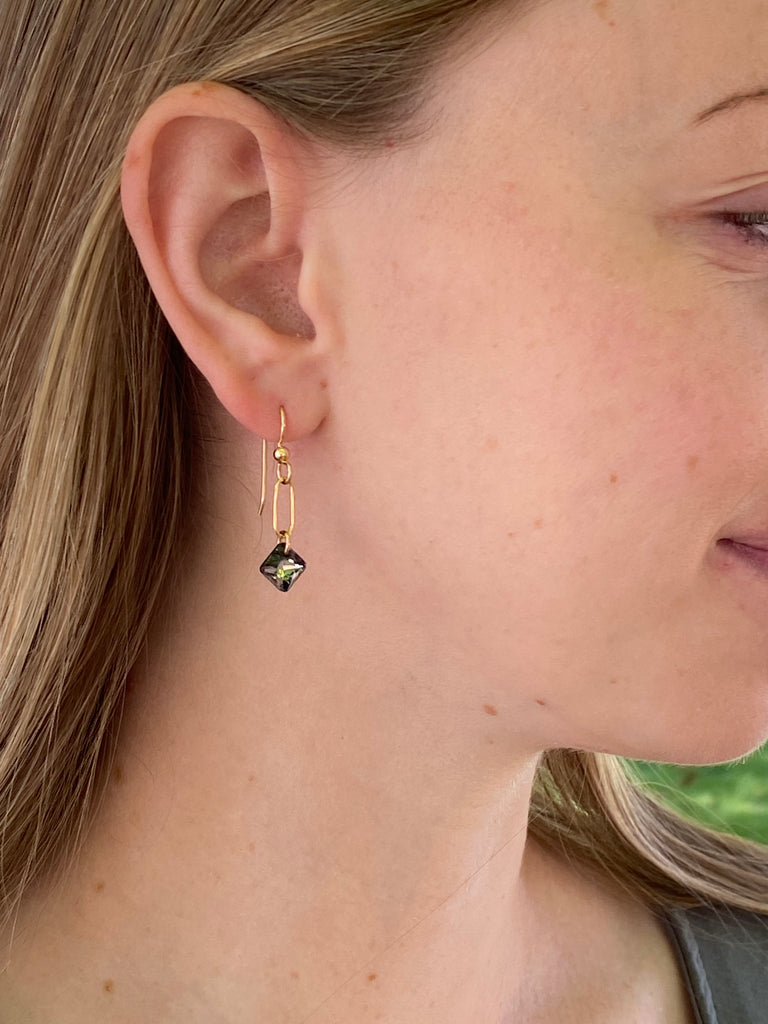 It’s a fan favorite We love it too. Our little paper clip earring in beautiful 14k gold filled accented with genuine crystal in 2 popular colors, they adds great pop to any outfit. A great little lightweight earring for day or night. 1 1/4” Be sure to grab a pair for yourself and one for a gift.
