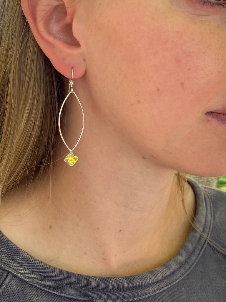 A customer favorite our beautiful unique hoop earrings are so lightweight and comfortable you can enjoy them all day every day. Available in Sterling Silver accented with Crystal that add just the right touch of sparkle. Size 2 1/4” You’ll love them A must have!