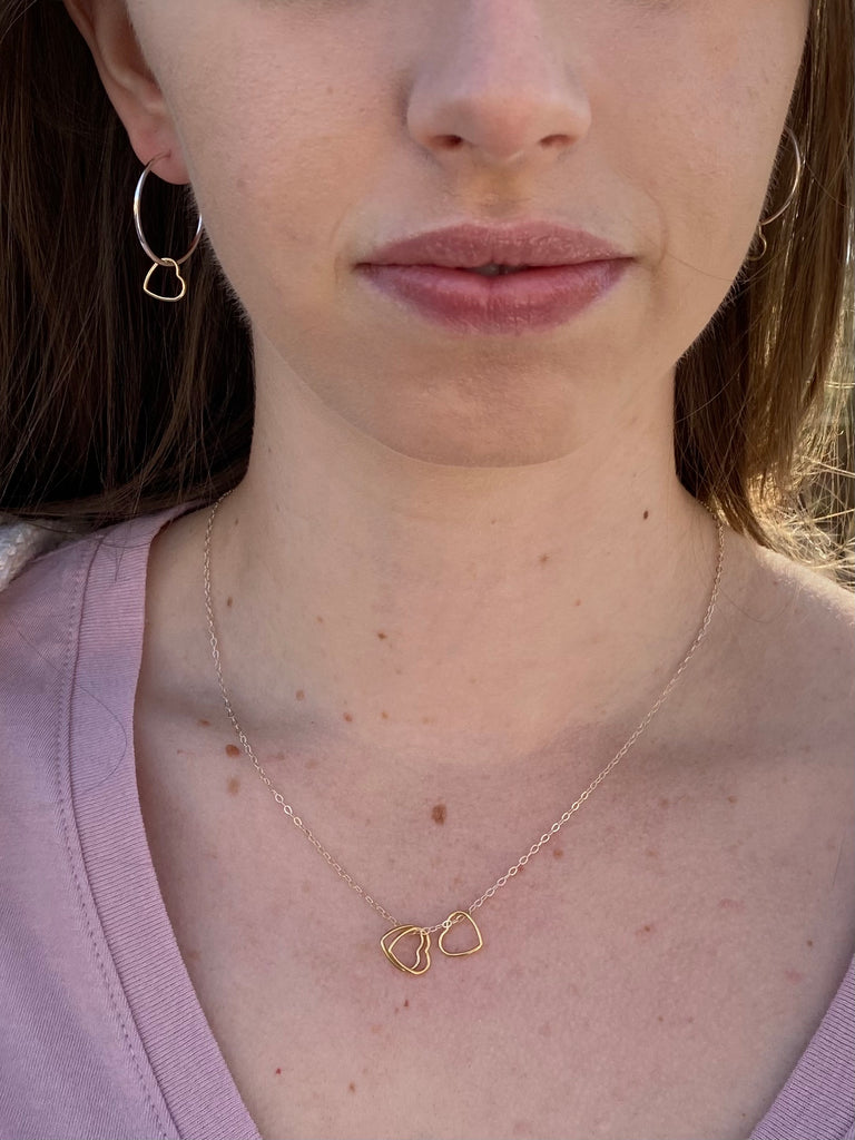 Our new necklace Hugs is charming the perfect gift, each floating heart represents a child or family member. Customize it with the number of hearts needed for her family. Keeping everyone close to her heart it will become a favorite in her jewelry collection. sterling silver and 14K gold filled