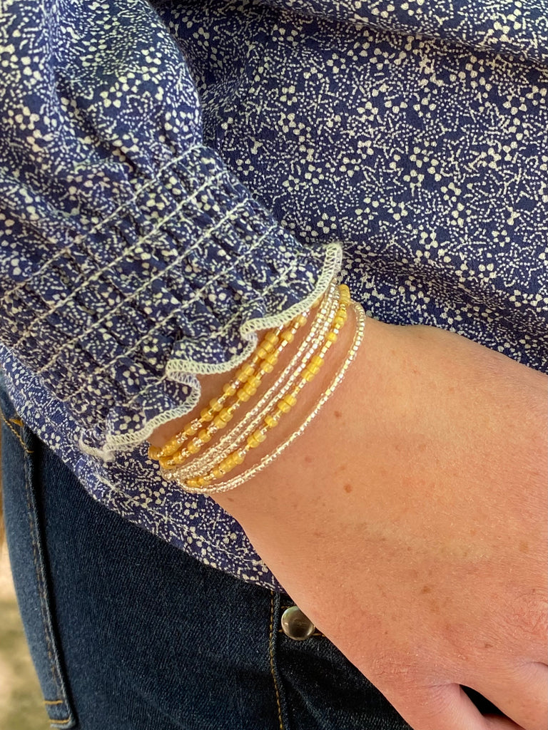 Our very popular Magic wrap bracelet is beautiful and so comfortable there fun these will quickly become your favorite. The wrap is single strand of glass beads, the wrap stretch bracelet is one size fits most. (1pc wraps 3 times) This is a bundle of 2 pieces. These make a fun gift you can mix and match with your outfit.