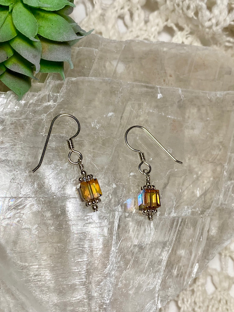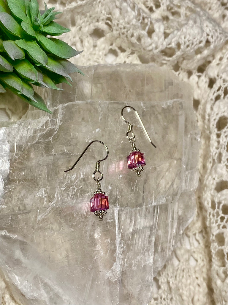 This is a great little earring for all ages the cube shape is accented with Sterling silver details it’s a light weight everyday earring that will bring a nice pop of color and sparkle to your outfit. Makes a great gift for anyone that likes a small earring.