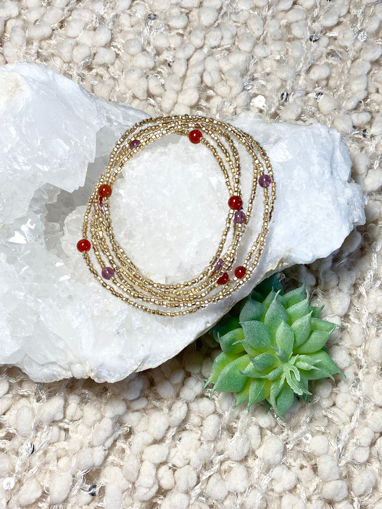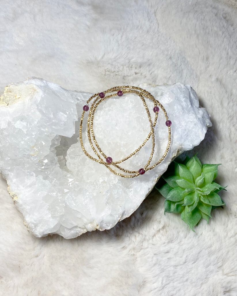 Our very popular Magic wrap is beautiful so comfortable there fun these will quickly become your favorite. The wrap is single strand of glass beads it’s slightly stretchy is one size fits most. Designed with natural gemstone accents.(1pc wraps 3 times) for bracelet. Looks amazing mixing 2 or 3 strands.