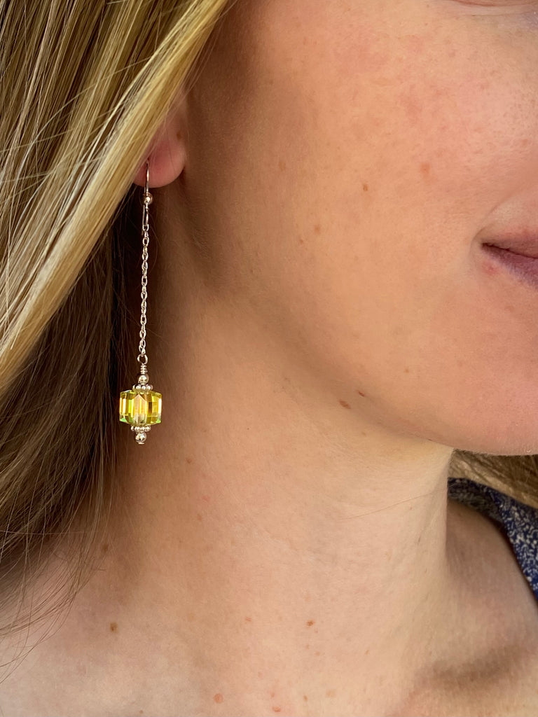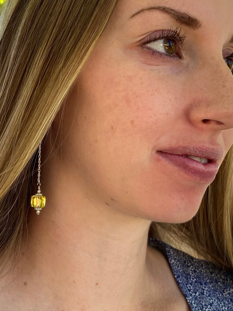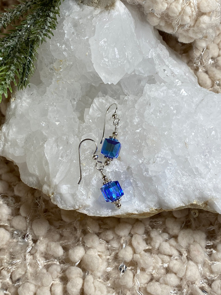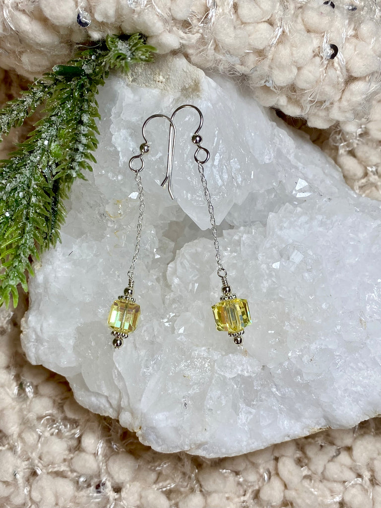 Our crystal cube earrings designed for the TV game show Deal or No Deal are stunning Designed with Sterling silver details. Available in the original size 21/2” or if you prefer a small earring it’s available in 1 1/4” with no chain this makes a statement for a small earring. Great for day time and dressy enough for evenings or a special event. A gift she will love