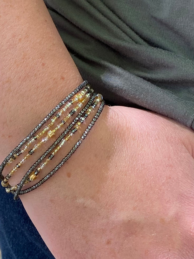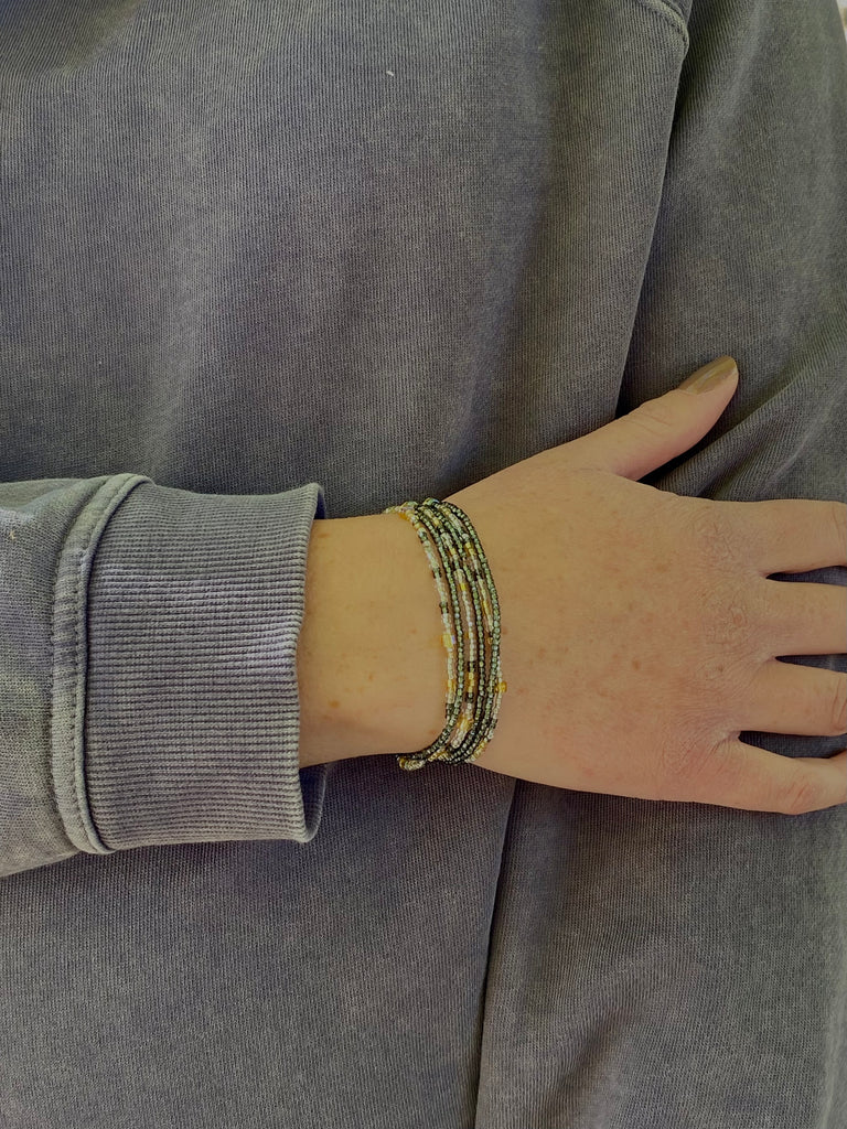 Our very popular Magic wrap bracelet is beautiful and so comfortable there fun these will quickly become your favorite. The wrap is single strand of glass beads, the wrap stretch bracelet is one size fits most. (1pc wraps 3 times) This is a bundle of 2 pieces. These make a fun gift you can mix and match with your outfit.